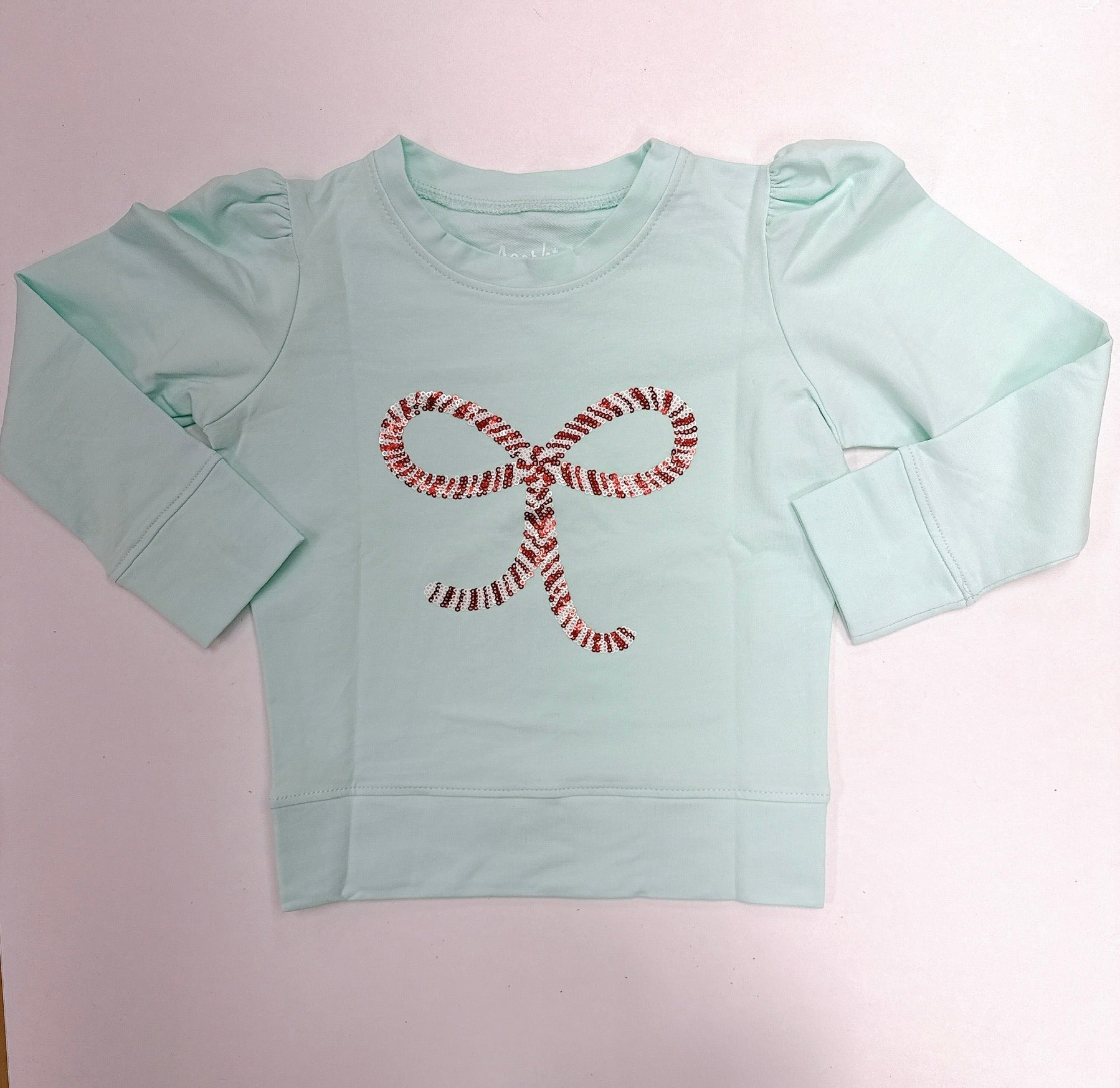 This mint green shirt is so cute and different for this holiday season! I love this cute candy cane bow design!