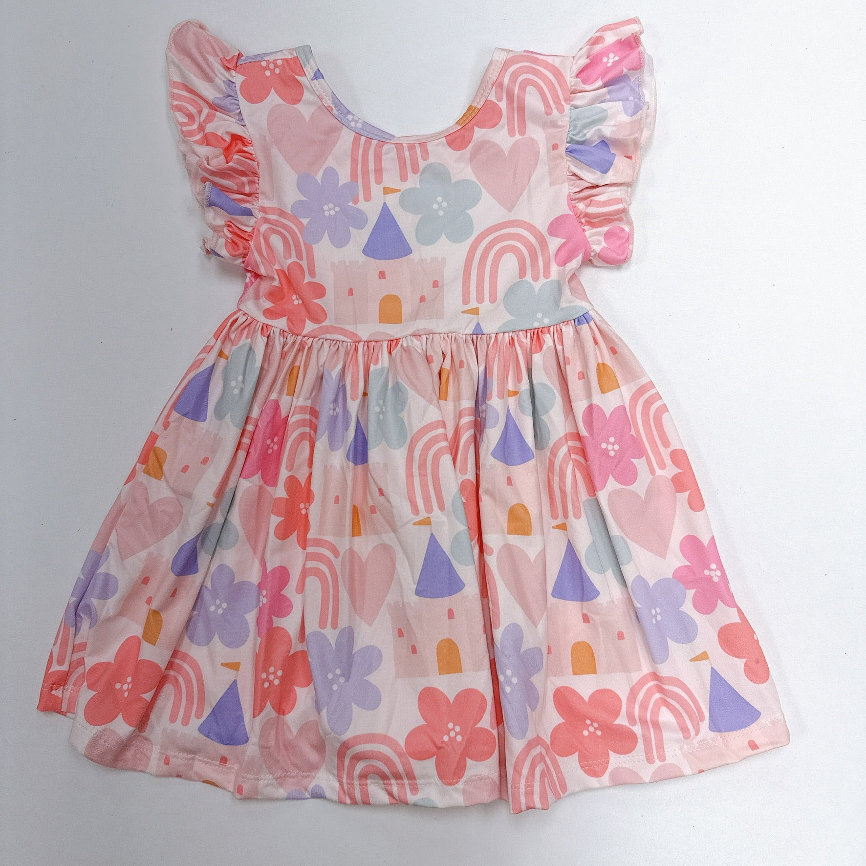 The perfect dress for school, special occasions, and everyday play! Designed by a mom and a dad. Mom wanted something twirly, comfortable and easy to wash. Dad wanted something easy to get on his chubby, big headed toddler. Designed with a scoop back for quick on and off, and higher neckline for modesty.