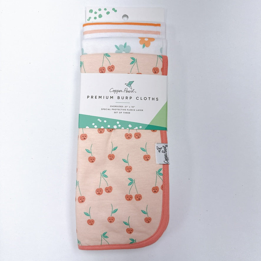 Our burp cloths are created with 100% ultra-soft cotton layers on the front (patterned) and back. You can feel confident that baby will feel cozy against your shoulder while burping.