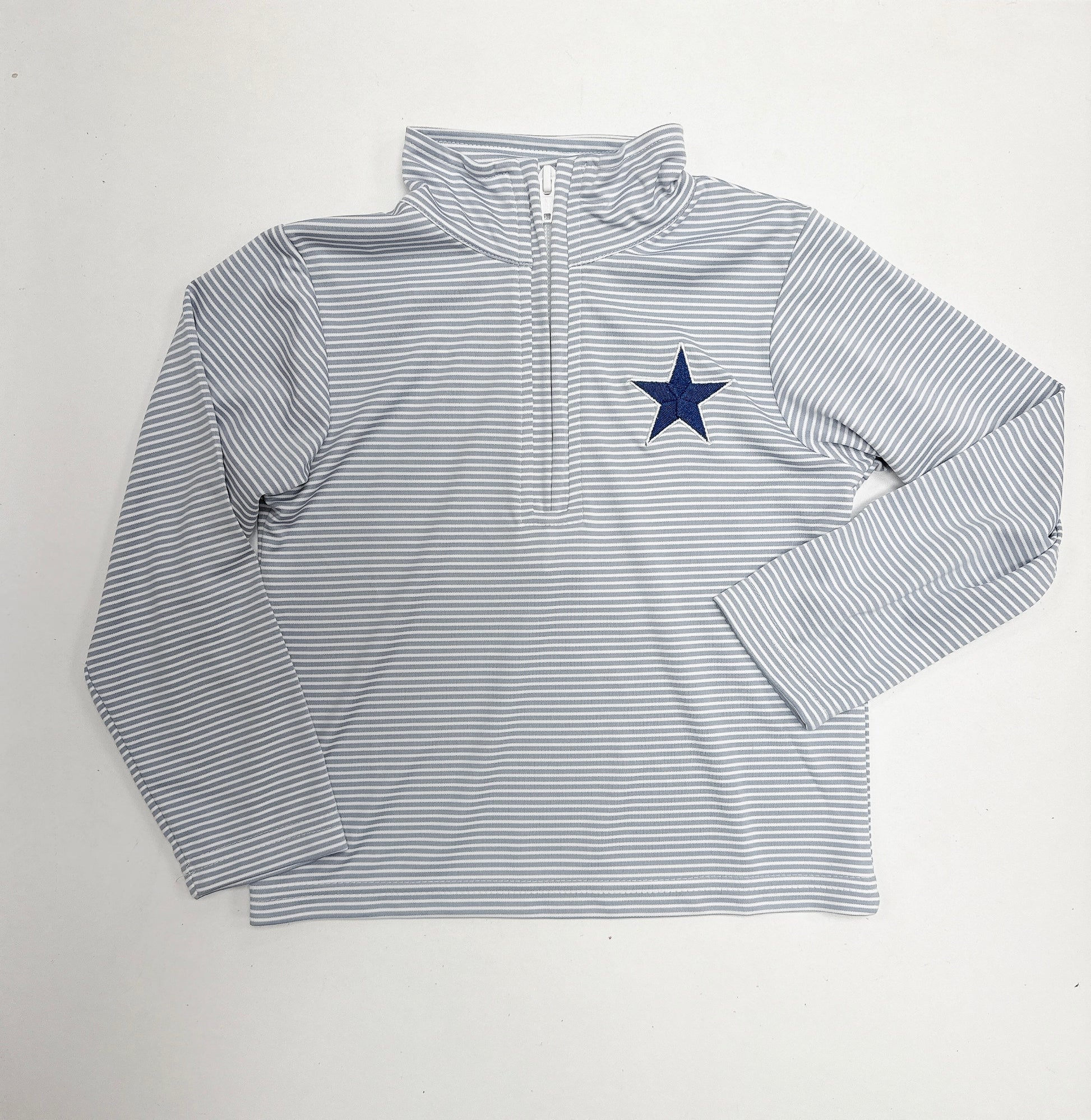 Cowboys Embroidered Star on Grey Stripes 1/4 zip Pullover