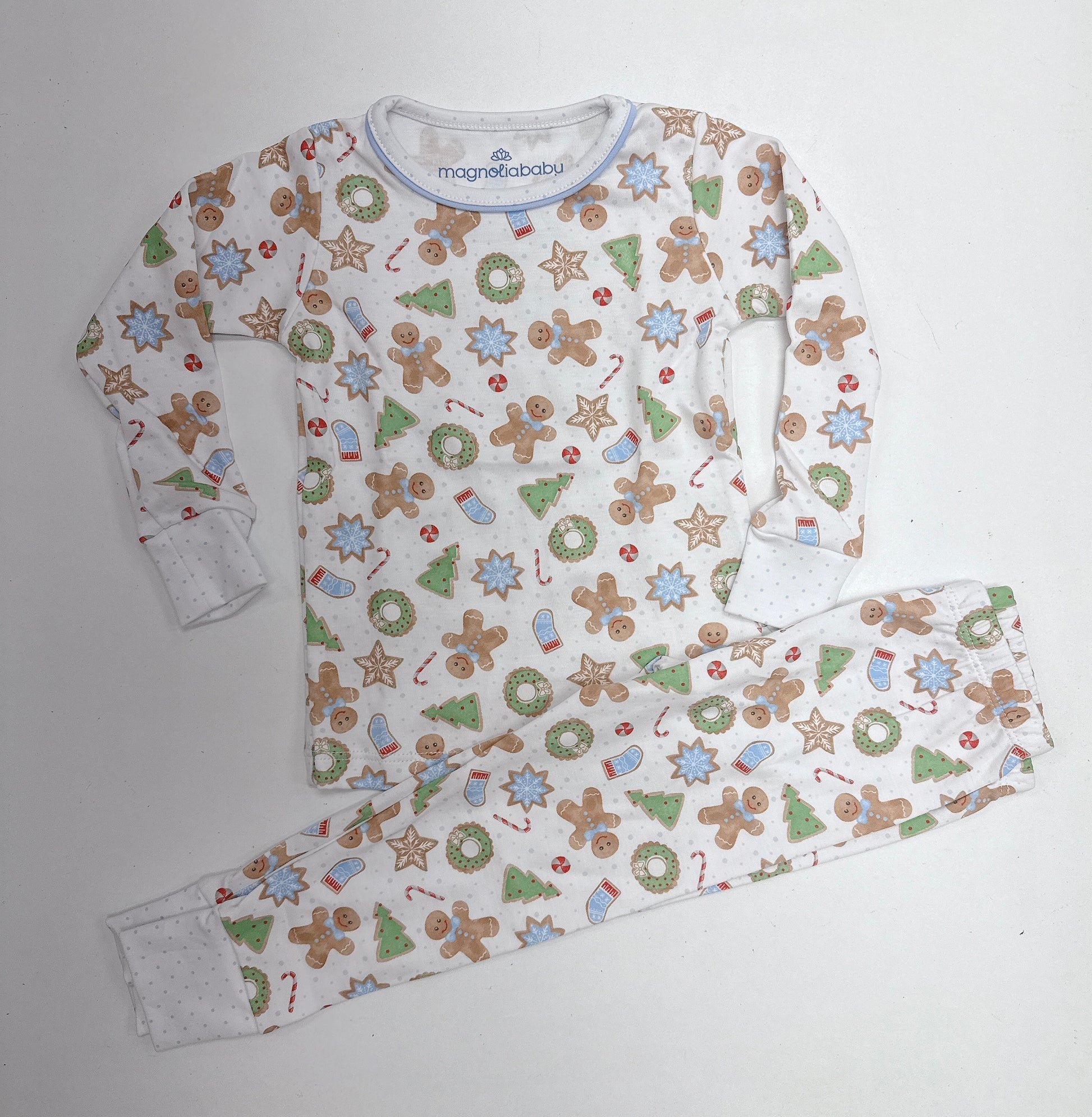 A wonderful choice for the holidays, this two-piece pajama set is made from ultra-soft luxurious Pima Cotton. The festive all-over print and snap placket make it a practical and charming piece for your little one's bedtime.