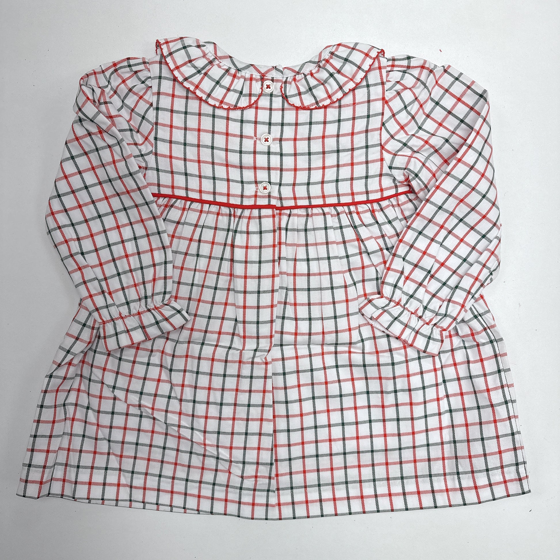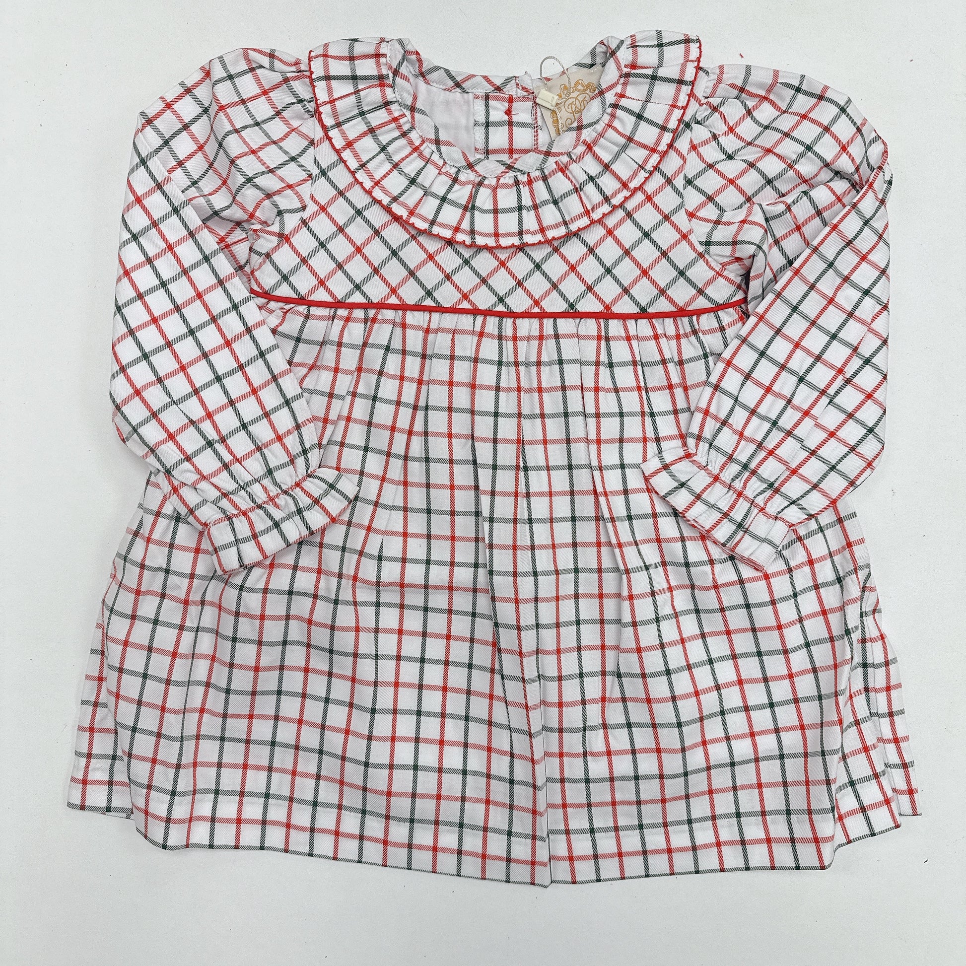 Our Long Sleeve Ramona Ruffle Dress in Old Town Tattersall is as sweet as can be. Featuring Richmond Red trim and a ruffle collar, this dress is sure to be a wardrobe staple this season!