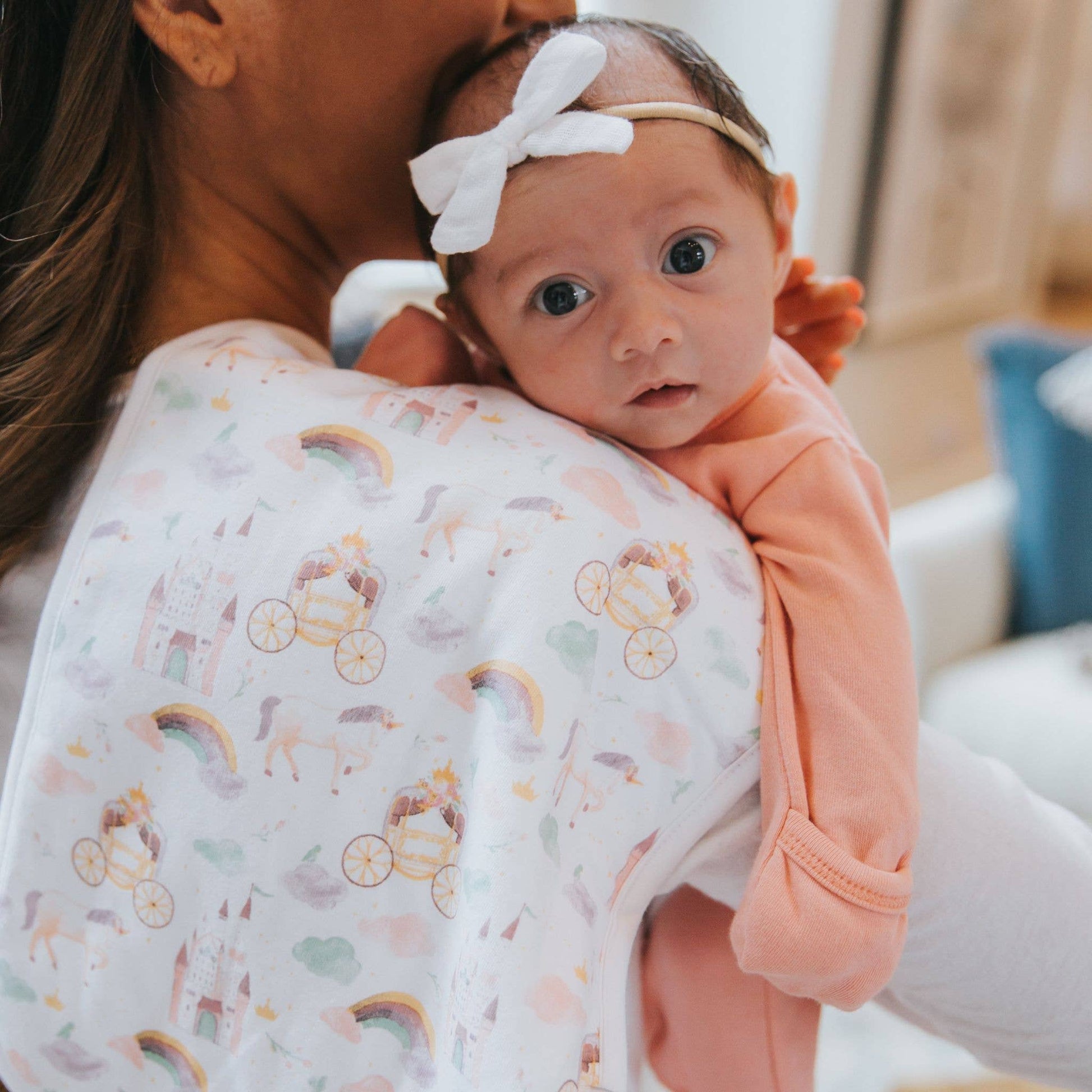 * Our burp cloths are designed with baby’s comfort in mind. That’s why we created them with 100% ultra-soft cotton layers on the front (patterned) and back (plain white). You can feel confident that baby will feel cozy against your shoulder while burping.