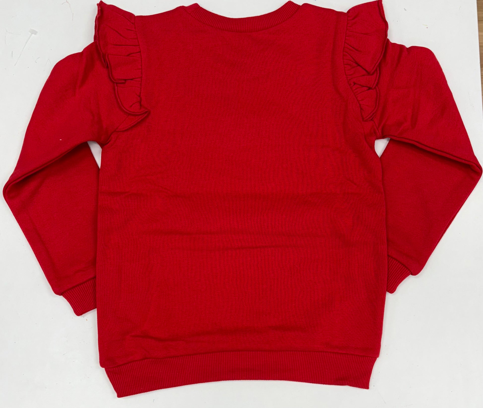 This red ruffle shoulder sweatshirt is a no brainer this holiday season! I love the sequin santa on the front! Cozy up with this top and a sequin tutu to bring the outfit together!