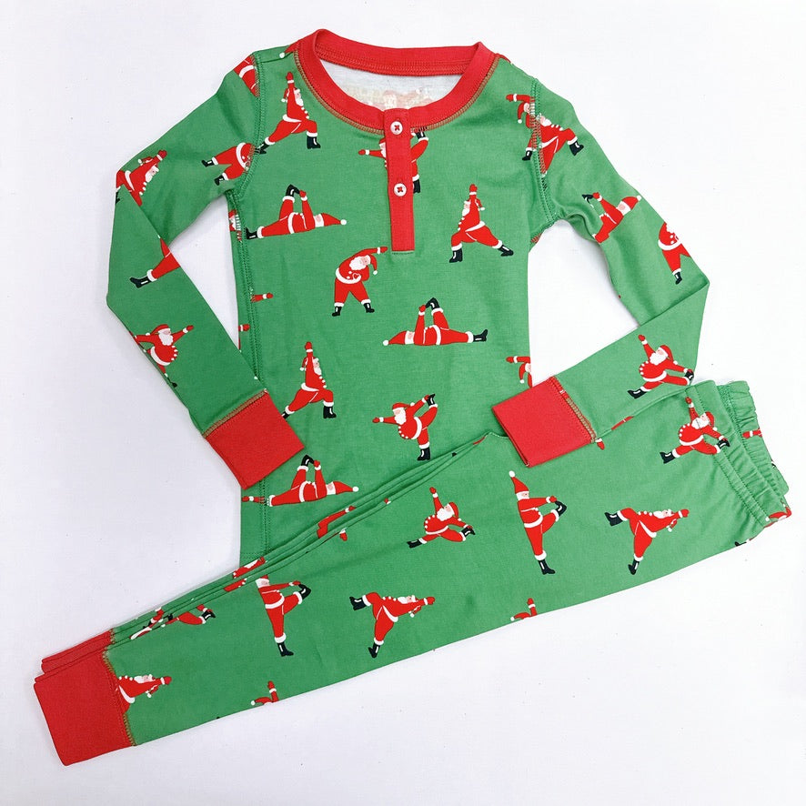 The best way to spread Christmas cheer is wearing T.B.B.C. Night Nights this year! Our Sutton's Sweet Dream Set in Toy Drop Training with Richmond Red feature Mr. Claus training for his big day. Made from Pima Cotton, this cozy two-piece set is perfect for keeping little ones comfortable all night long.
